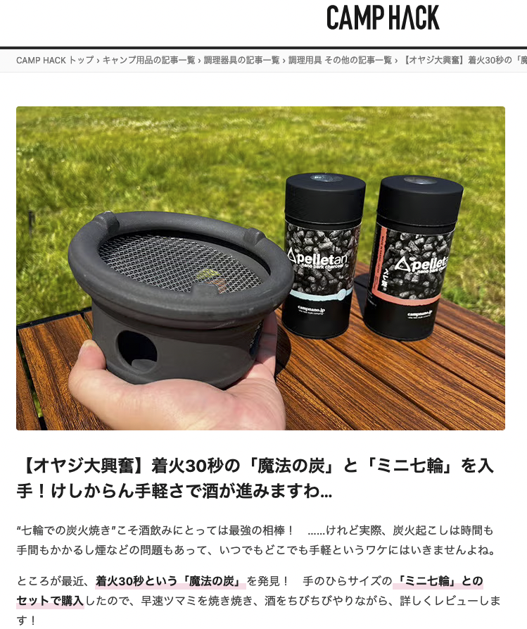 【ペレ炭】CAMP HACKにて紹介していただきました 2024年7月7日2025年1月11日キャンプナノが販売しております魔法の炭『ペレ炭』をCAMPHACKで紹介していただきました。 URL Copied!